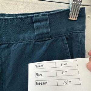 These are wide-leg, mid-rise pants that are fitted through the waist and hip