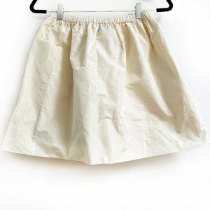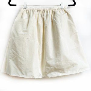 DESCRIPTION: Taffeta high-waisted A-line mini skirt with inseam pockets and an elastic waistband. It's made from silky smooth taffeta with a structured feel and lustrous sheen. It’s sourced from a premier Italian mill. I usually wear large, and I liked how the XS fit most. The waist can stretch to fit an L. So it depends how poofy you want the skirt to look. It can be worn dressed up and also casually, it's very versatile.