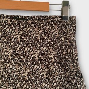 Relaxed printed mini shorts with side pockets and a flattering flared shape by Talula. Features an abstract allover pattern in neutral tones, soft draped viscose fabric, and a stretch waistband for easy comfort and effortless style.