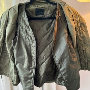 Aritzia Talula Army Green Cotton Lined Jacket with drawstring waist