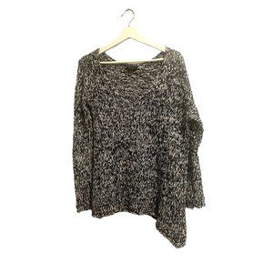 Marled crochet loose-knit. Asymmetric hem. Super cozy and comfortable fabric. Worn on or off the shoulder.