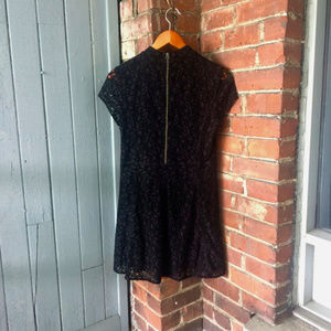 Details: Mock neck, fitted top, slight skater silhouette. Soft lace fabric. Discreet see-through lace detailing on sleeves and small of back.