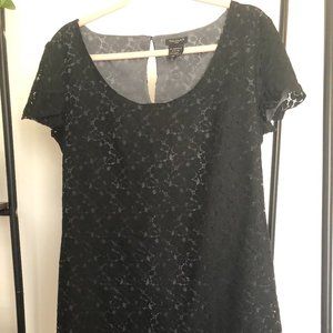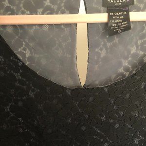 Perfect black mini dress! Excellent condition lace mini by Talula from Aritzia. Delicate black lace over sheath, with cap sleeves & scoop neck. Size Large. New without tags!