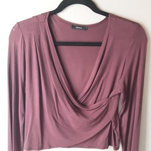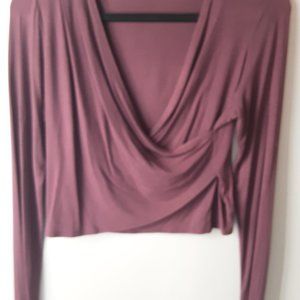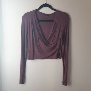 Aritzia Talula Burgundy Faux Wrap Long Sleeve Shirt Size Med.
