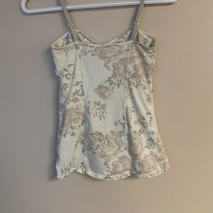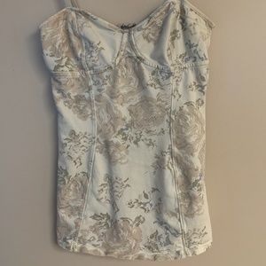 Off white/cream coloured bustier style tank top with a light floral pattern from the brand Talula at Aritzia. The top is in good condition with no stains or visible flaws.