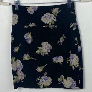 Aritzia Talula Floral Mini Pencil Skirt Womens Size Medium Cotton Spandex Black