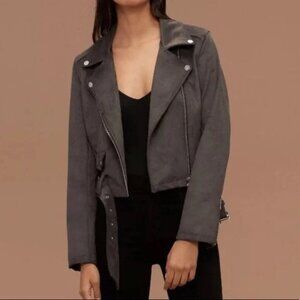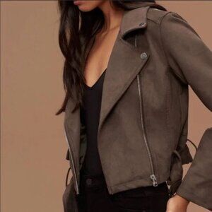 Description: Made with a luxe vegan suede, this jacket has an authentic look and a rich texture — the perfect complement to the totally-classic motorcycle jacket styling.