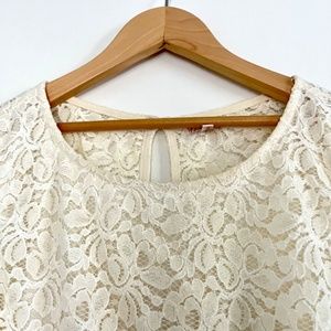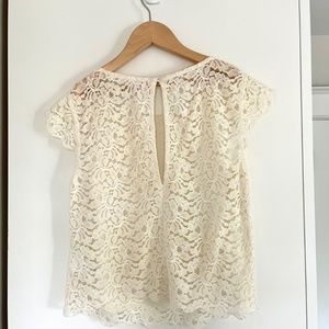- Lace cream top with scalloped hem