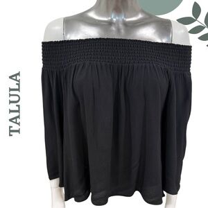 Aritzia Talula Marcilly Blouse | Black Off-Shoulder Smocked Top | Size Small