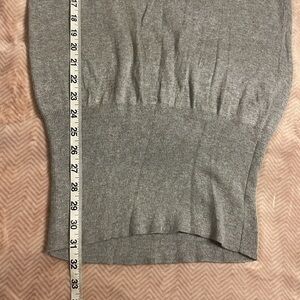 Luxuriously soft cashmere blend v-neck sweater with wide ribbed bottom to fit snug around the bottom. Perfect for over leggings.