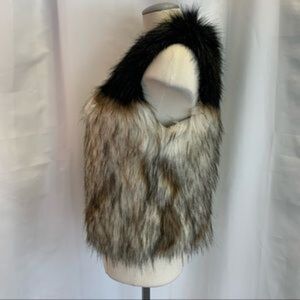 Aritzia Talula faux fur vest black cream brown Sz XS