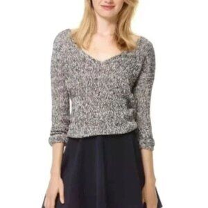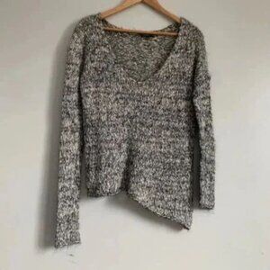Aritzia Talula lose knit V Neckline Sweater in white black asymmetrical hem M