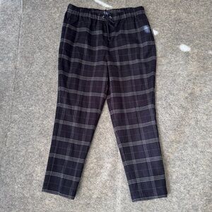 Aritzia The Group Babaton Plaid Trousers Black Gray L Relaxed Fit Ankle Pants