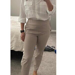 These are high-waisted pants with a classic fit, slash hand pockets and an elastic waistband. They're cut from sweat-wicking fabric with a slick, cool touch and sculpting feel.