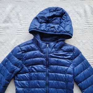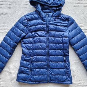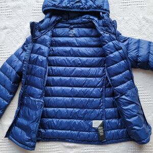 Aritzia TnAction Botanie Puffer Goose Down Packable Lightweight Hooded Jacket- This is a slim-fit, hooded down jacket that packs into an interior pocket. Wear it on its own or as a toasty extra layer under coats and jackets when the temperature really drops. It’s made with Lite Shine — technical, water-repellent fabric. This version is featherweight, wind resistant and has a pearlescent finish with a soft feel.