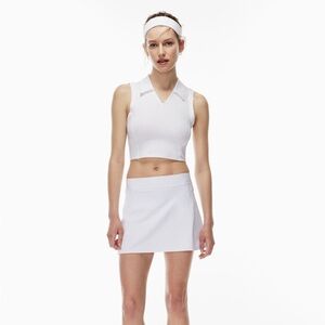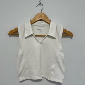 V-neck polo tank Ball's in your court This is a V-neck polo tank designed for a slim fit. It's cut from soft, peachy fabric that wicks sweat and has plenty of stretch. Materials & Care * Content: 77% polyester, 23% elastane * Care: Machine wash * Imported Size & Fit * Fit: Slim - Streamlined to fit close to the body * Length: Waist - Intended to hit between the waist and high hip * Model is 5'7"/170cm wearing a size S * On average, customers say it fits true to size