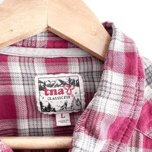 Aritzia Tna Classic Fit Women's Button Down Flannel Shirt Plaid Red Large