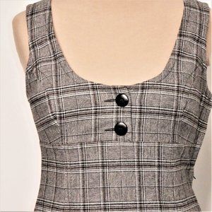 Aritzia Tulula Grey / Brown Plaid Mini Dress Size 6. Empire style top, deep front scoop neck with 2 button closure, 2 functional front pockets, side zipper. wear it on its own, or layer over blouse, or turtleneck for casual or business look. Great all season piece. check photos for fabric content and washing instructions. Excellent pre-owned condition. Smoke and pet free home.
