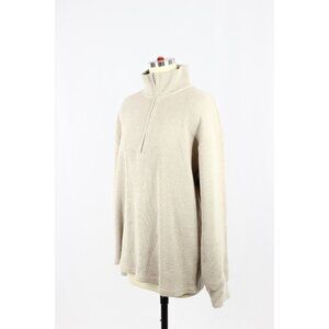 Aritzia WILFRED FREE Loft Taupe Cotton Waffle Knit Oversized 1/4 Zip Top, Size M