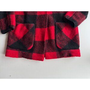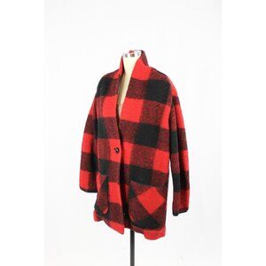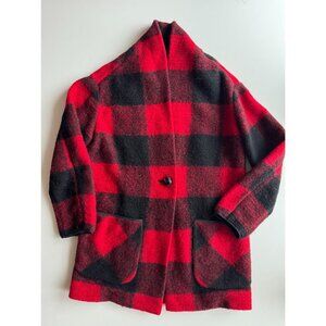 Aritzia WILFRED FREE Off Duty Red Black Check Wool Blend Cocoon Coat, Size S