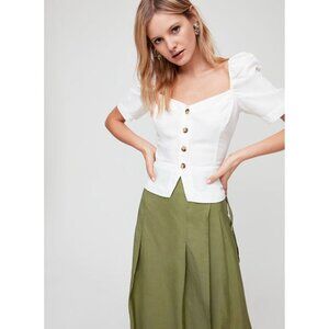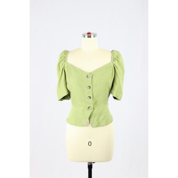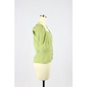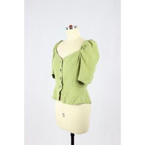 Aritzia WILFRED Janine Green Linen Blend Peplum Prairie Blouse Top, Size M