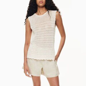 Aritzia Wilfred Peek Crochet Knit Crewneck Light Birch Tank Top Size S