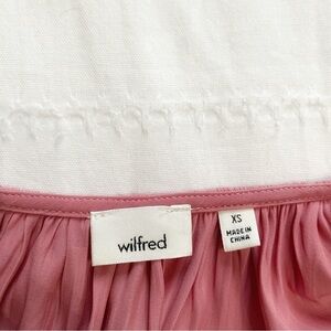 Aritzia WILFRED SHIMMER PINK TEXTURED SHORT SLEEVE V-NECK FLOWY MINI DRESS - XS
