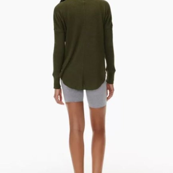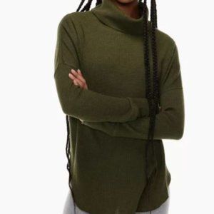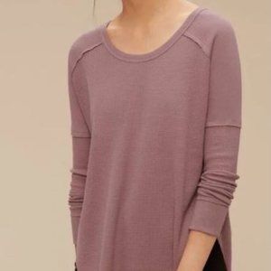 This is a thermal longsleeve with a slouchy cowl neck, dropped shoulders and ribbed cuffs. It’s made from cozy and textural waffle-knit fabric.