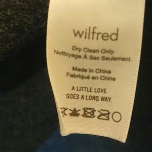 Wilfred, EUC, Size S, 100% Merino Wool, unlined charcoal grey cardigan with 2 front pockets, 2 button front, side vents, shawl collar. This is not a lightweight cardigan, so can be worn on colder days. No visible marks, stains or tears.