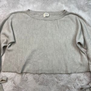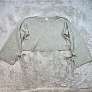 Aritzia Wilfred 100% Merino Wool Emmy Crop Beige Tie Sleeve Scoop Neck Sweater S