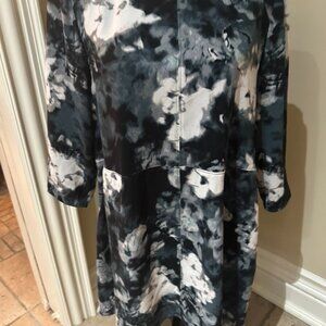 Side pockets, lined skirt, loose fit, long sleeve, round neck with a vertical centre seam