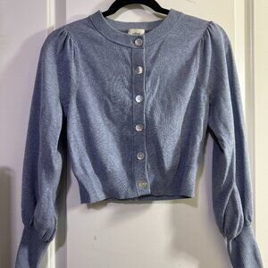 Aritzia Wilfred Alessia puff sleeve cardigan sweater granite blue XXS