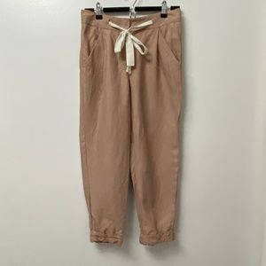 Act casual. These are casual trousers with a drawcord waist and rolled cuff hem. They’re made with a lightweight, drapey crepe fabric from Japan.