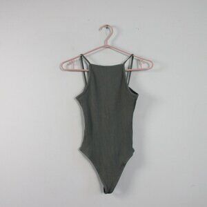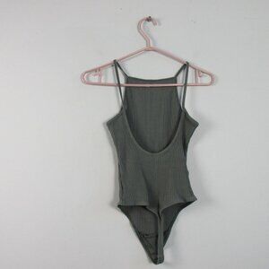 Aritzia Wilfred Annecy Women Bodysuit XS Green Ribbed Spaghetti Strap Thong