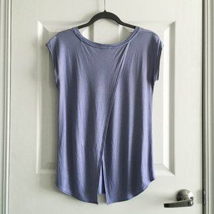 Good condition Anvers T-shirt by Wilfred from Aritzia. Probably my favorite style of t-shirt sold by Aritzia, I have it in a number of colors. It has an open kite back, fun for warm weather, but I've also had success tucking it into jeans and skirts for a keyhole or no hole effect. Selling in a pale indigo purple, white shown only for fit.