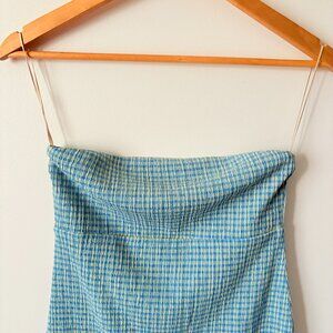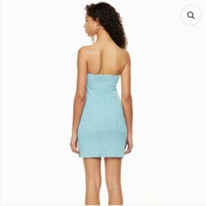 Aritzia Wilfred Attention Smocked Strapless Mini Tube Dress Blue Size Medium