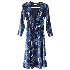 Aritzia Wilfred Aubagne Floral Blue Green Cut Out Midi Long Sleeve Dress Size 0.
