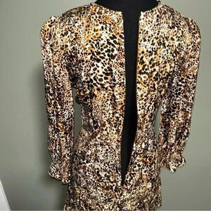 Leopard Wilfred Baroque Dress Size 2 Fit & Flare Mini Dress Darted Bust Puff Sleeves Custon Print 100% Viscose