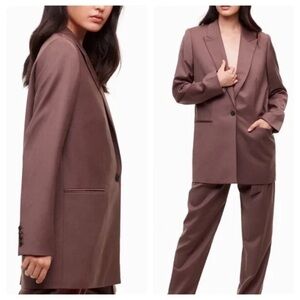 Aritzia Wilfred Belcastel Blazer Jacket Oversized Shoulder Pads Tailored Brown