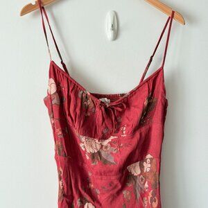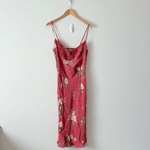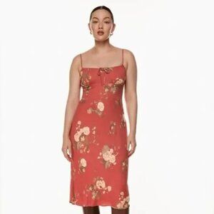 Aritzia Wilfred Bellow Gathered Bust Midi Dress in Rosy Red Floral Size 8