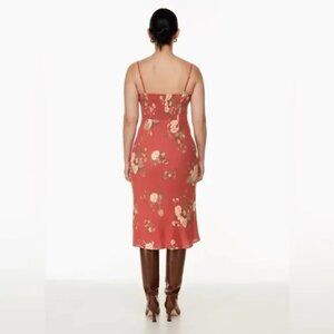 Aritzia Wilfred Bellow Gathered Bust Midi Dress in Rosy Red Rich Chestnut Floral Size 8