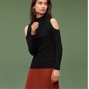 Aritzia Wilfred Black Knit Cut-out sleeve Mock-neck Top