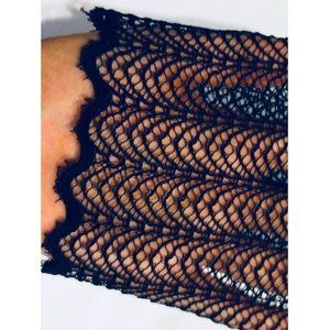 Made from soft, romantic lace, this blouse has an elegant look. The slightly cropped silhouette is trimmed with delicate wave lace at the hem and sleeves. black cami attached underneath. Long sleeves, black color.