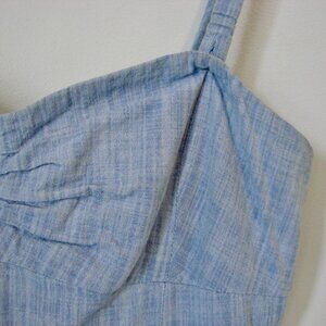 Aritzia Wilfred Blue Chambray Bustier Mini Dress Cotton Coastal Summer ~ Size 8 ~ 100% Cotton