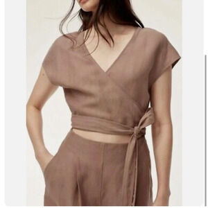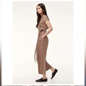 Aritzia Wilfred Brax Nutmeg Linen Blend Jumpsuit Open Front Wrap cut out size 4