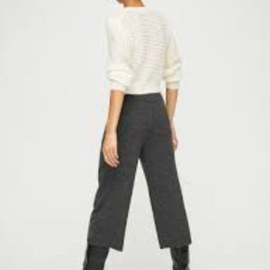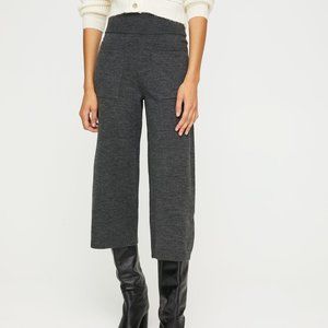 Cropped, high-waisted, wide-leg merino-wool pant with a fitted, ribbed waistband. They're knit with a slick merino wool blend that keeps its shape.