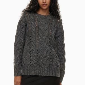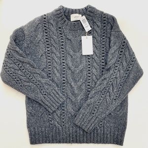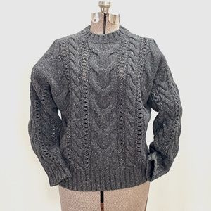 This is a relaxed crewneck sweater with dropped shoulders and ribbed trim. It's knit from luxe, cozy yarn that's made with a combination of responsibly sourced wool and recycled materials. It’s constructed with a Cable stitch in a unique, custom design for a three-dimensional look and texture.