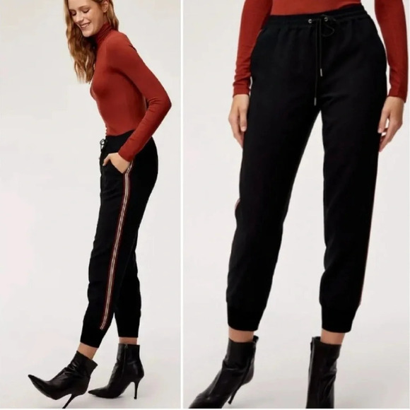 Aritzia Wilfred Buffon Black Jogger Pants With Side Red Stripes / Piping