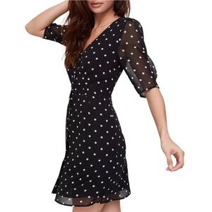 Aritzia Wilfred Button-Front Dress Black & White Polka Dot Sz 0
