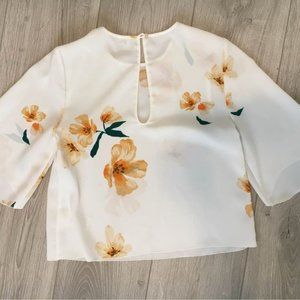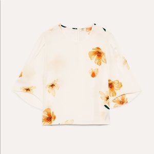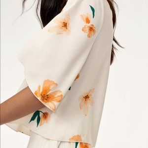 All the romantic feels. Exceptionally soft fabric gives the Cambrai a beautiful, feminine drape. Half-length bell sleeves lend a romantic feel, and the custom floral print was designed exclusively for Wilfred — it was based off a hand-painted print by the artist.
